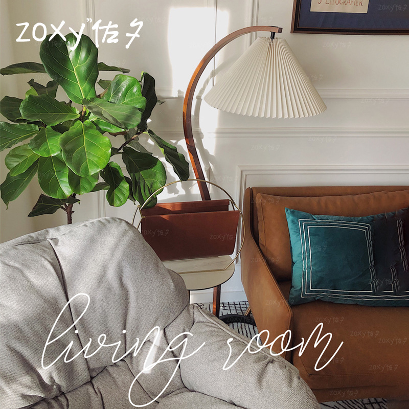 Zoxy Zuo Xi Amerika Vintage Lipit Lampu Lantai Retro Gaya Jepang Kayu Solid Pertengahan Lampu Berdiri Sofa Ruang Tamu
