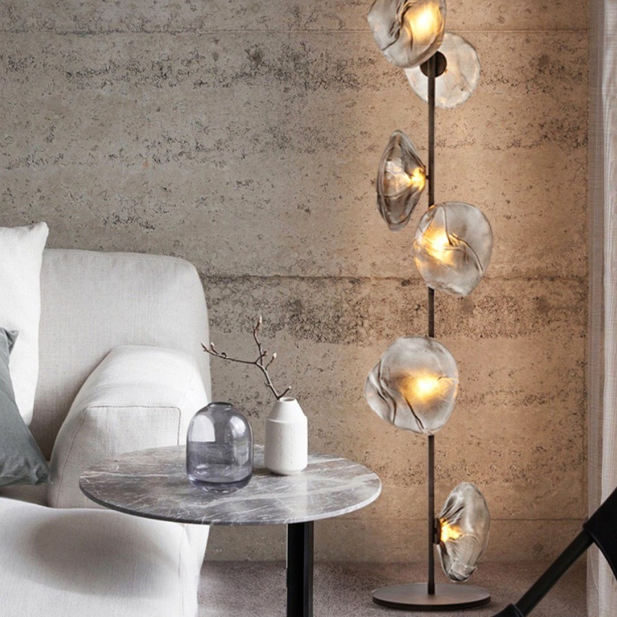 Lampu Lantai Modern Belakang Ruang Belajar Lampu Lantai Eropa Utara Sederhana Bentuk Bulat 9 Ruang Tamu Lampu Lantai Kaca Kreatif Kamar Tidur Kepribadian