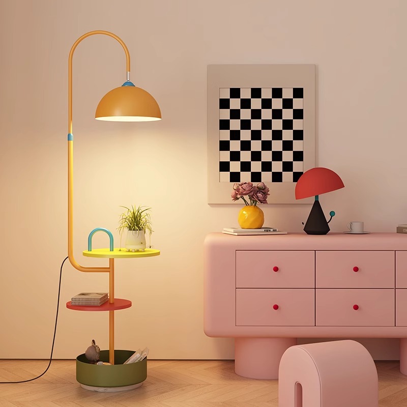 Lampu Lantai Macaron Rak Ruang Tamu Meja Kopi Nordik Lampu Sofa Tempat Tidur Anak-anak Kreatif Lampu Lemari Terintegrasi