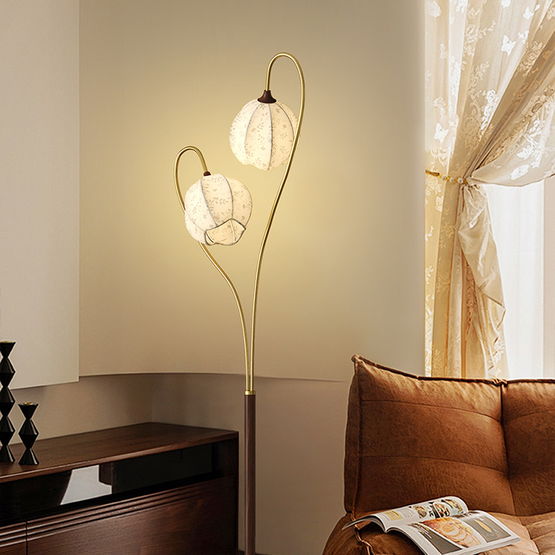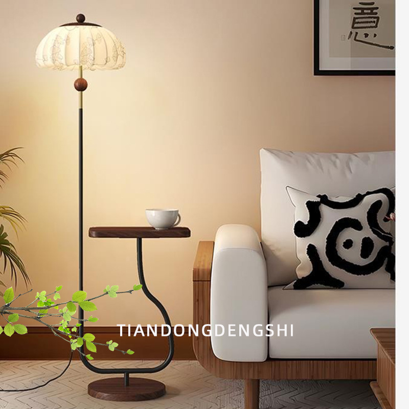 Lampu Lantai Retro Kain Motif Bunga Estetika Dinasti Song Gaya Pertengahan 2025 Lampu Suasana di sebelah Sofa Kamar Tidur Ruang Tamu Model Baru 2025