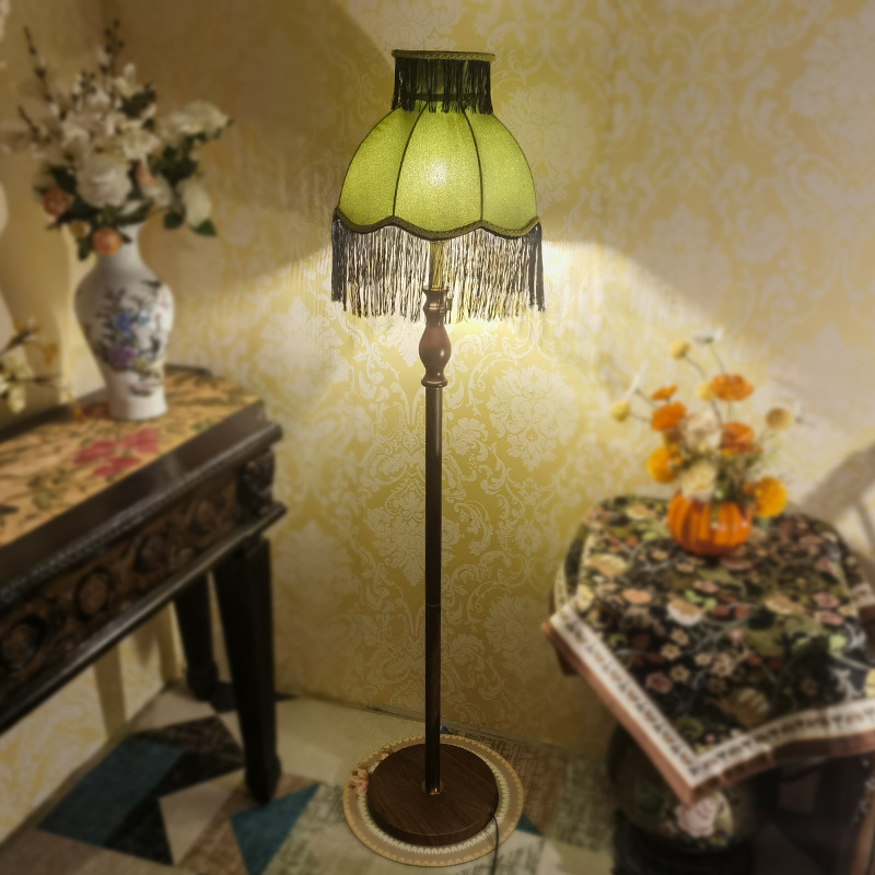 Lampu Lantai Vintage Gaya Perancis Lampu Meja Vertikal Kepala Tempat Tidur Ruang Tamu Krim Retro Lampu Suasana Lipit Gaya Jepang