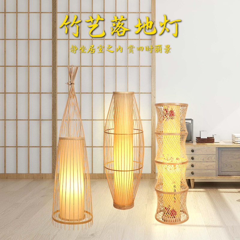 Lampu lantai ruang tamu kamar tidur ruang teh Zen lampu samping tempat tidur B & B lampu meja bambu kreatif jepang lampu bambu modern tiongkok