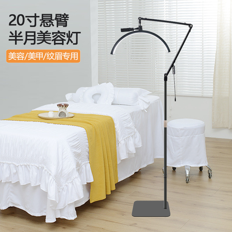 Katrol kantilever 20 inci 36W, lampu kecantikan setengah bulan tato alis salon kecantikan bulu mata bentuk U cahaya pengisi lantai