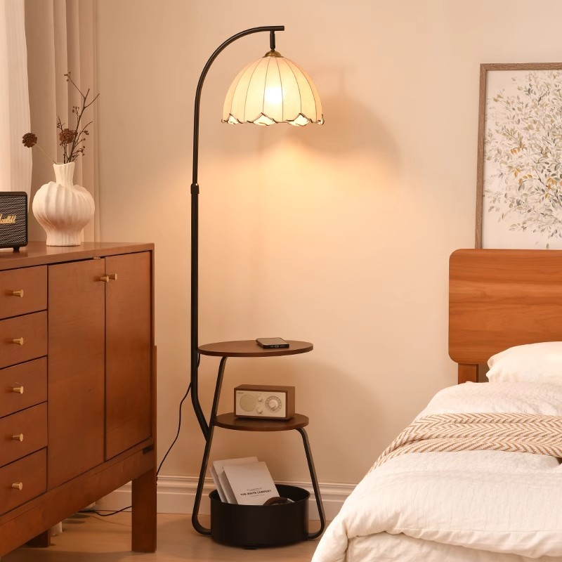 Lampu lantai gaya krim, hiasan samping rak sofa ruang tamu lampu suasana kamar tidur kelas tinggi