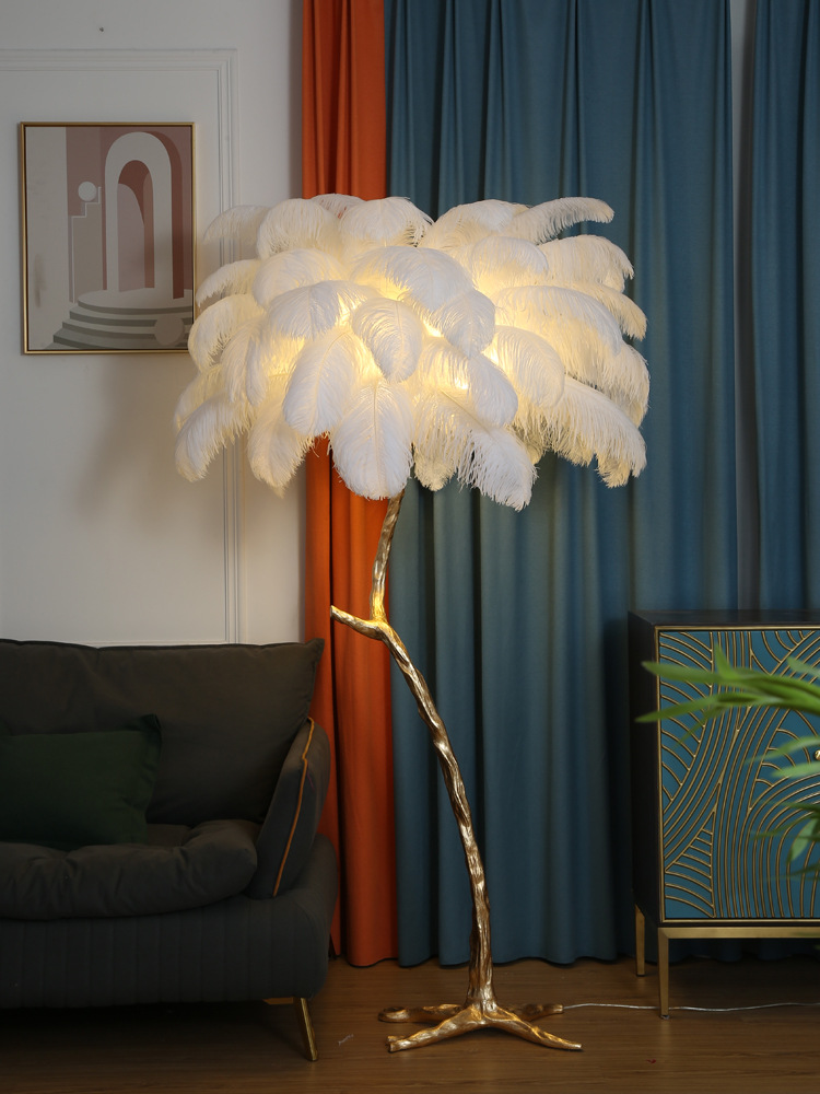 Lampu Lantai Bulu Berlatar Belakang Tembaga Mewah Gaya Amerika Lampu Samping Tempat Tidur Selebriti Internet Lampu Pohon Ruang Tamu Putri Lampu Meja
