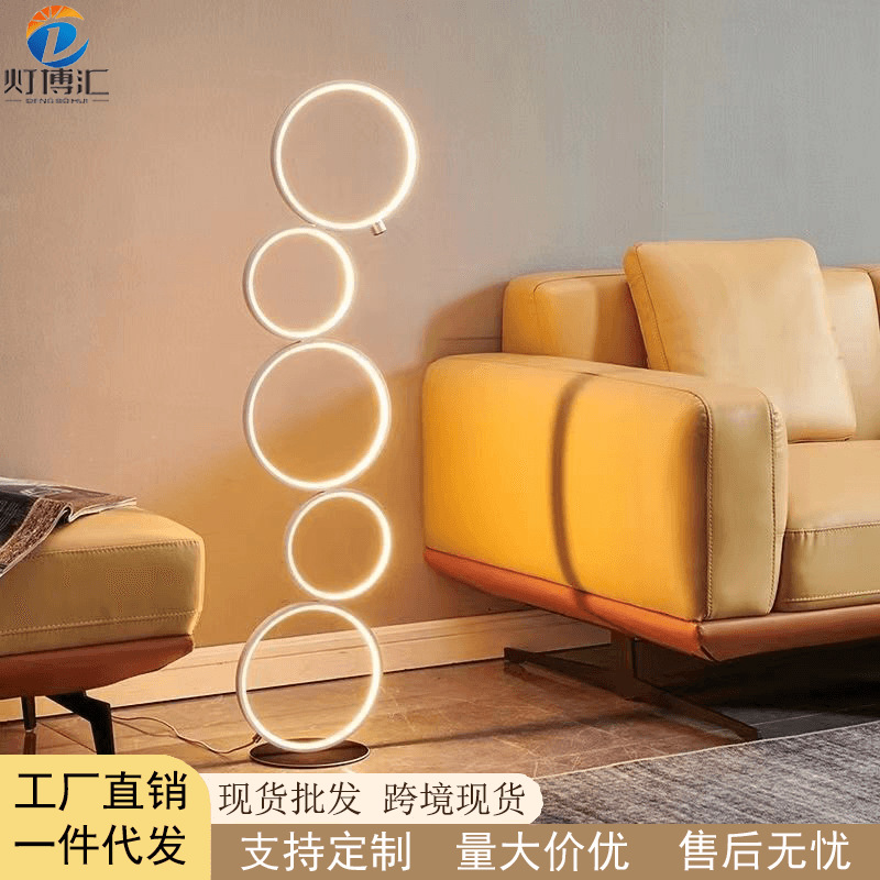 Lampu Lantai Kreatif Nordik Sofa Ruang Tamu Sederhana Kamar Tidur Kepala Tempat Tidur Desain Lima Cincin Dekorasi Latar Belakang Lampu Suasana