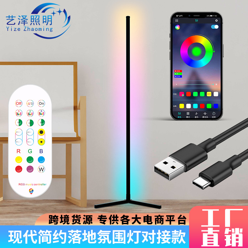 Lampu plafon lantai terang colokan sederhana, lampu sudut Bluetooth warna ajaib LEDRGB, lampu irama musik ruang tamu kamar tidur