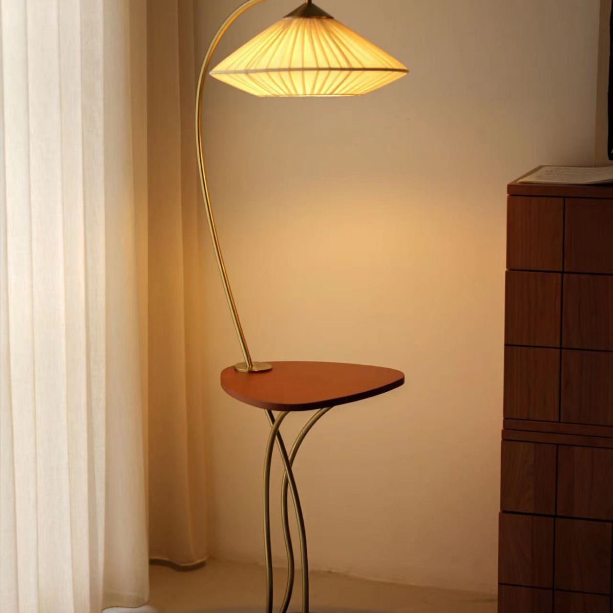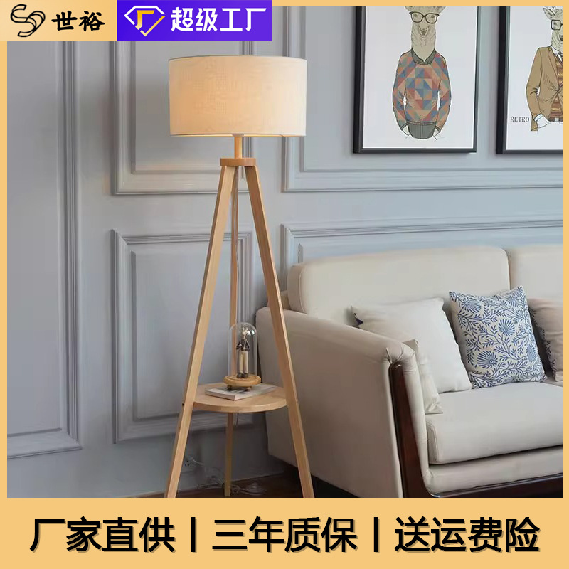 Sarung Kain Kelas Atas Ruang Tamu Lampu Lantai Lantai Kamar Tidur Kayu Solid Retro Meja Lemari Tempat Tidur