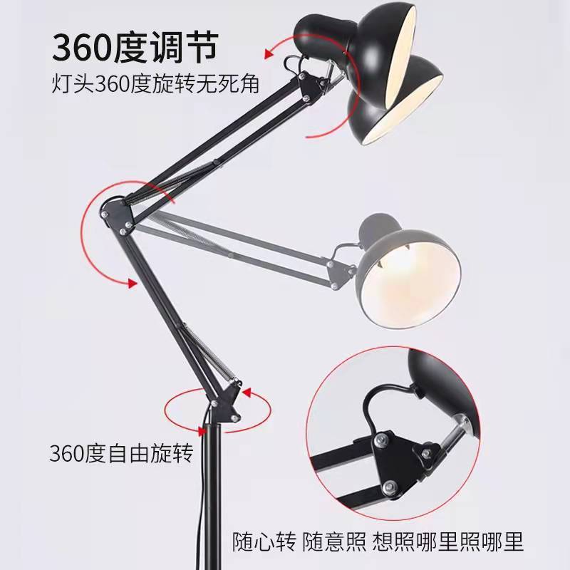 Lampu Kerja Super Terang Pelindung Mata Lampu Meja Lantai Retro Tipe Retro Mewah Gaya Vertikal Ruang Tamu Kamar Tidur Lengan Panjang Lipat Lampu Tipe Plug