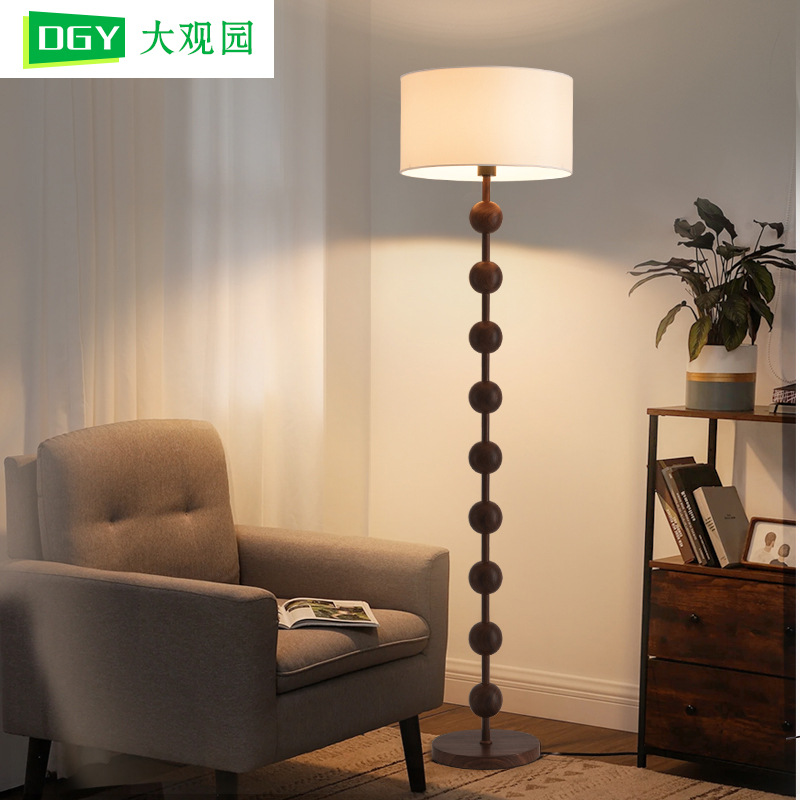 Lampu Lantai Kayu Walnut Gaya Pertengahan Lampu Baca Samping Sofa Ruang Tamu Lampu Samping Tempat Tidur Kamar Tidur Retro Gaya Tiongkok Baru