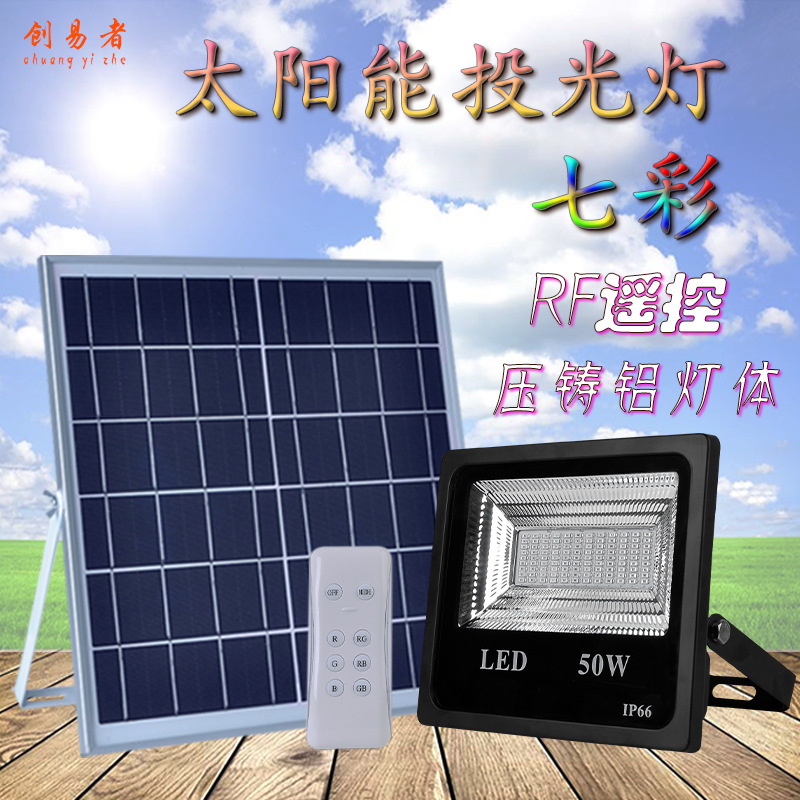 Lampu Sorot tenaga surya 50W, alat penerangan luar ruangan remote control RGB warna-warni untuk rumah halaman rumput super terang tahan air lampu banjir