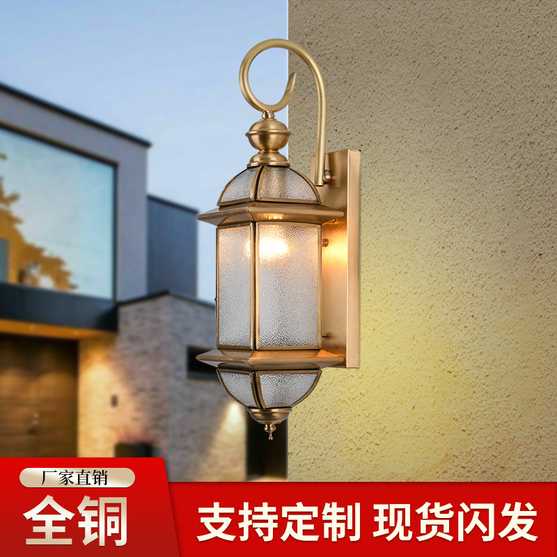 Lampu dinding luar ruangan, gaya Eropa tembaga tahan air lampu dinding balkon koridor lampu lorong halaman lampu Vila luar ruangan