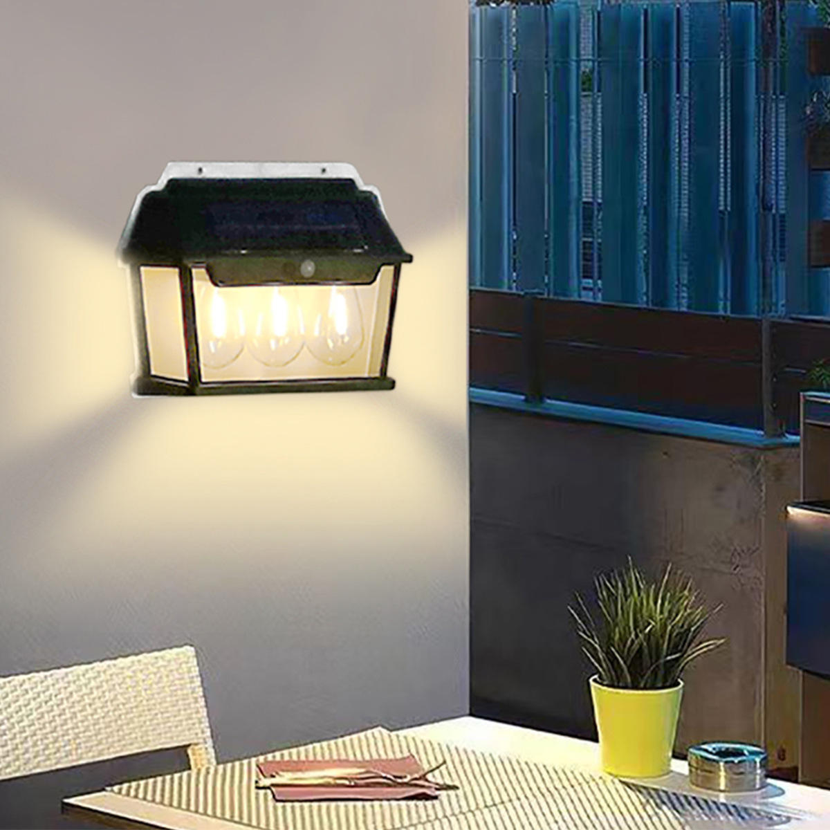 Lampu induksi tenaga surya luar ruangan, lampu pencahayaan rumah kecil tahan air taman vila halaman lampu dinding hangat kawat tungsten