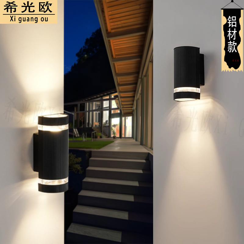 Lampu Dinding Luar Ruangan Modern Sederhana Atas Bawah Lampu Taman Lampu Pintu Depan Lampu Dinding Tahan Air Setengah Bulat Aluminium