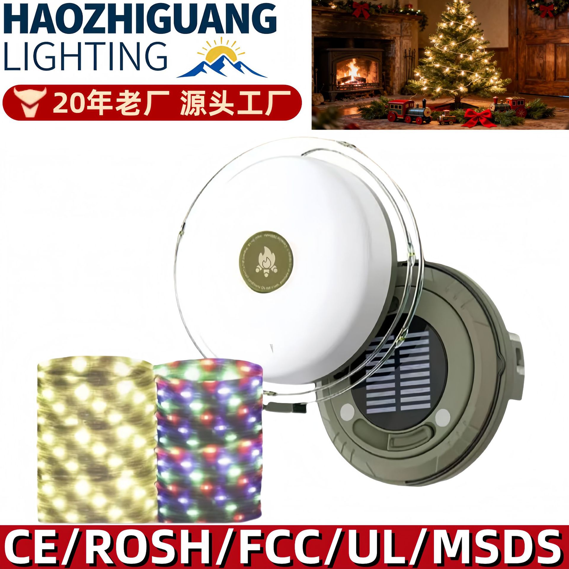 Lampu Berkemah Surya Lintas Batas Luar Ruangan Tahan Air Portabel Lampu Berkemah Bergaris LED Bersuasana Tujuh Warna