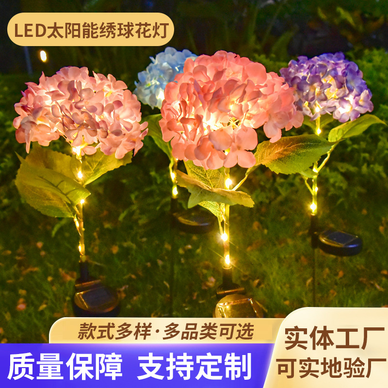 Lampu Hydrangea Batang Lampu Lampu LED Tenaga Surya Lintas Batas Luar Ruangan Dekorasi Halaman Rumput Lampu Suasana Gelap Otomatis
