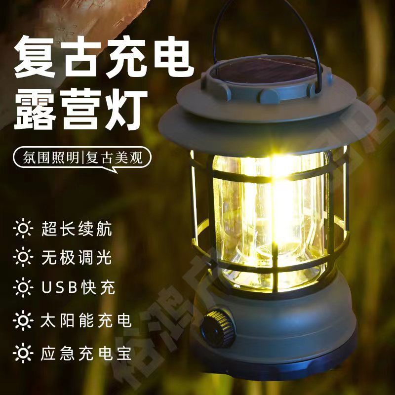 Lampu berkemah luar ruangan lampu berkemah LED stan cahaya matahari lampu darurat tenda isi ulang lentera grosir
