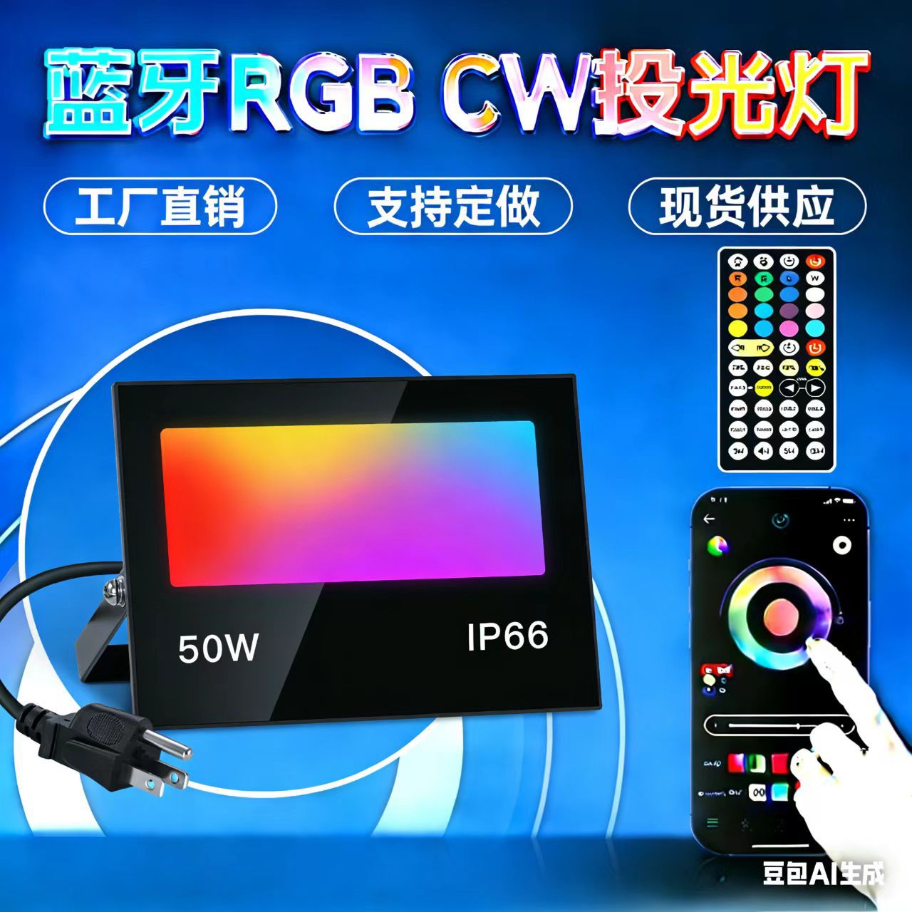 RGBCW lampu sorot led remote control, lampu lanskap cerdas Bluetooth rgb + 2700-6500K 30W 50W