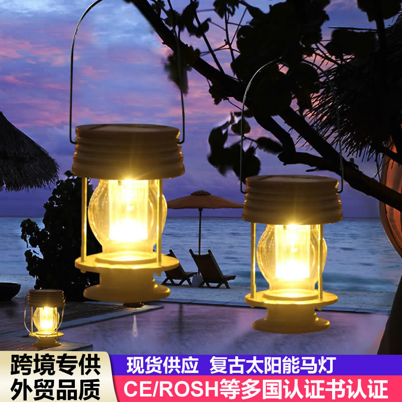 Lampu gantung tenaga surya, lampu berkemah tali, lentera retro luar ruangan, lampu taman dekoratif