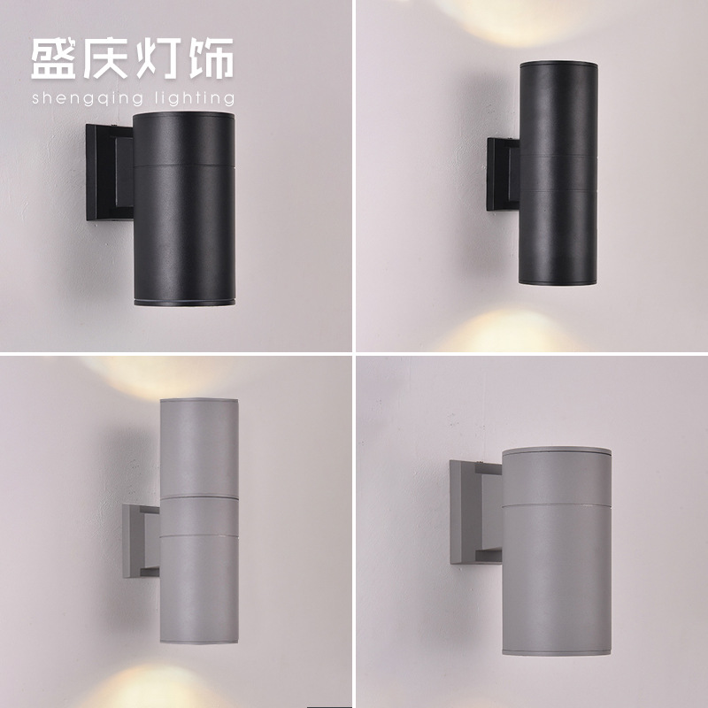 Lampu dinding berkepala ganda tahan air luar ruangan lampu koridor dinding eksterior Hotel Villa pilar gerbang bundar lampu bercahaya atas dan bawah