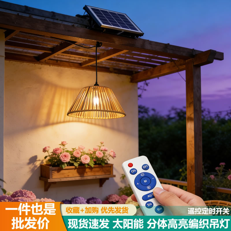 Lampu Gantung Rotan Tenaga Surya Pencahayaan Halaman Luar Ruang Matahari Tahan Air Lampu Gantung Dalam Ruangan Rumah Gazebo B & B