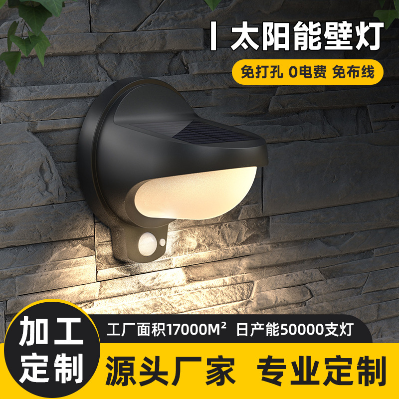 2025 Baru Tenaga Surya Lampu Dinding Luar Ruangan Induksi Halaman Taman Jalan Villa Pencahayaan LED Gelap Otomatis