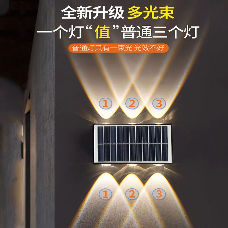Lampu Dinding Solar 6LED, lampu dinding bercahaya atas dan bawah taman luar ruangan lampu dinding tahan air 4LED dekorasi halaman lampu malam