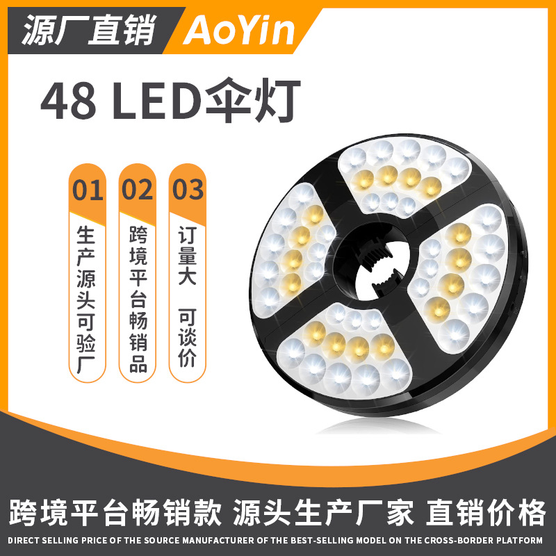 Lampu payung halaman 48LED luar ruangan lampu darurat warna cahaya variabel pengisian daya DC lampu gantung cakram klip lampu tenda