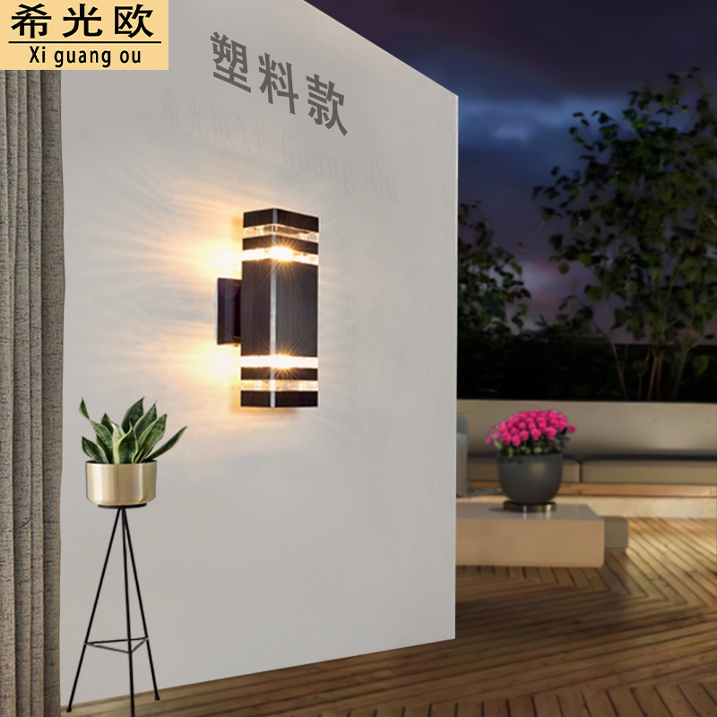 Lampu Dinding Luar Ruangan Casing Plastik Persegi Panjang Modern Sederhana Atas Bawah Lampu Taman Lampu Dinding Tahan Air di Pintu Depan Pintu