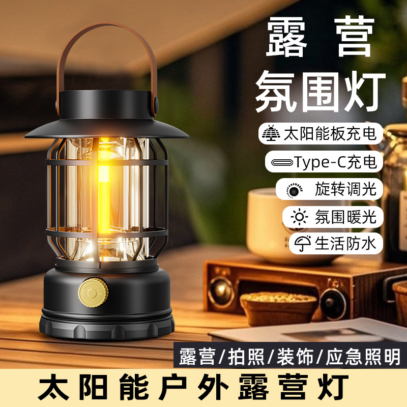 Lampu Kemah tenaga surya baru, lampu Kemah luar ruangan, lampu suasana tenda retro, lampu COB portabel