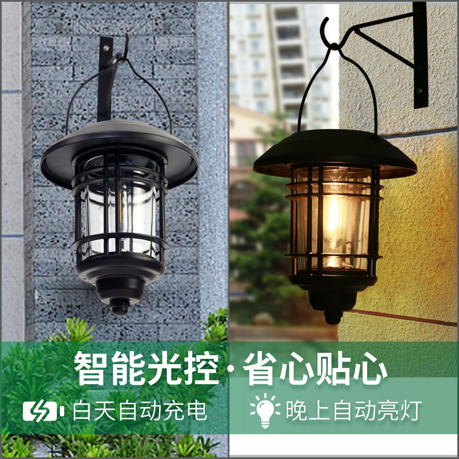 Lampu Dinding halaman retro tenaga surya, lampu dinding LED tahan air, lampu luar ruangan dekorasi lanskap induksi Taman