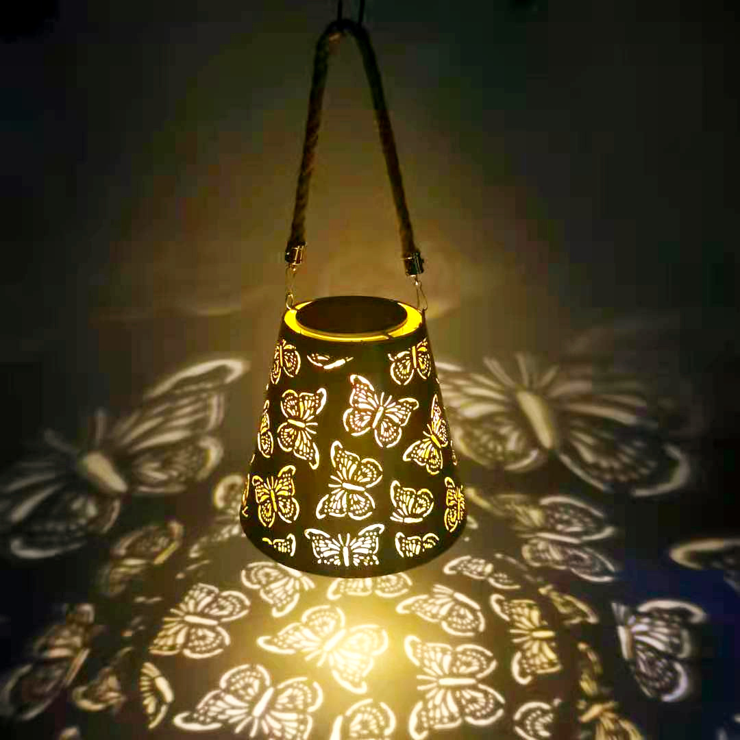 Lampu surya lintas batas, lampu proyeksi kupu-kupu berongga besi tahan air lampu gantung halaman rumput Villa induksi