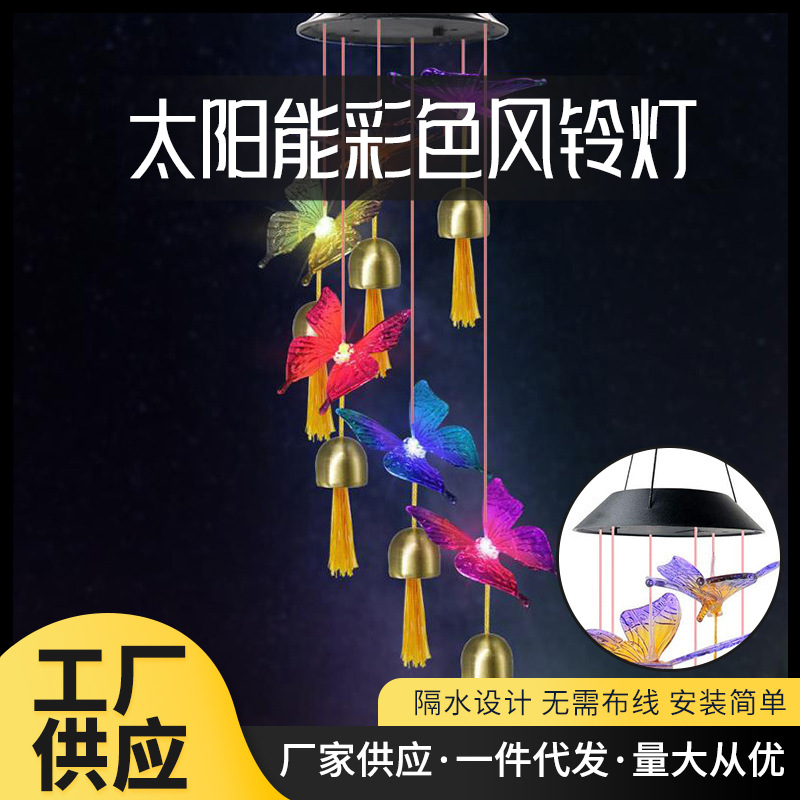 Lampu lonceng angin warna surya, lampu malam LED lanskap halaman taman, lampu gantung dekoratif balkon tahan hujan luar ruangan