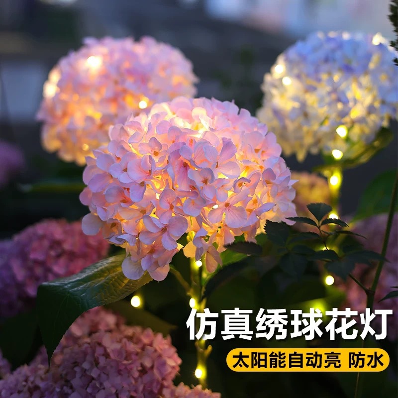 Lampu Luar Rumah LED Tenaga Surya Halaman Halaman Tahan Air Rumah Tangga Taman Balkon Dekorasi Suasana Lantai Hydrangea