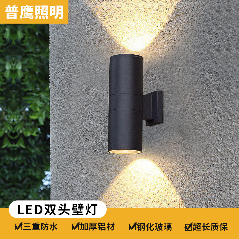 Lampu dinding berkepala ganda, lampu dinding led atas dan bawah lintas batas luar ruangan tahan air modern minimalis halaman villa koridor