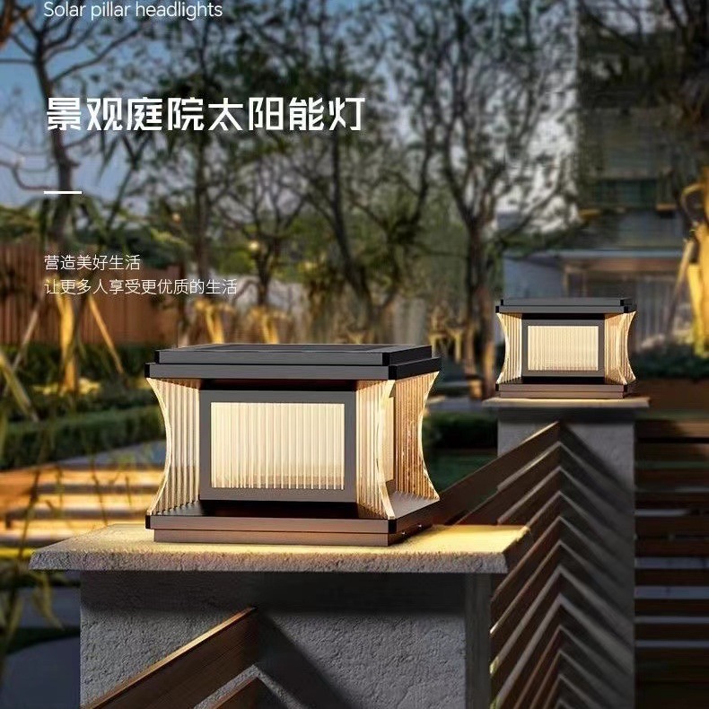 Lampu dinding taman surya, lampu taman tenaga surya luar ruangan tahan air lampu taman Led kolom persegi bercahaya lampu hias pintu rural lampu pagar batch