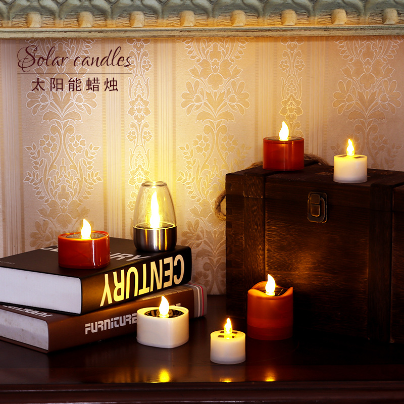 Cahaya lilin tenaga surya elektronik antiair luar ruangan rumah tangga lilin T lilin kecil teh hantu festival Natal lampu LED