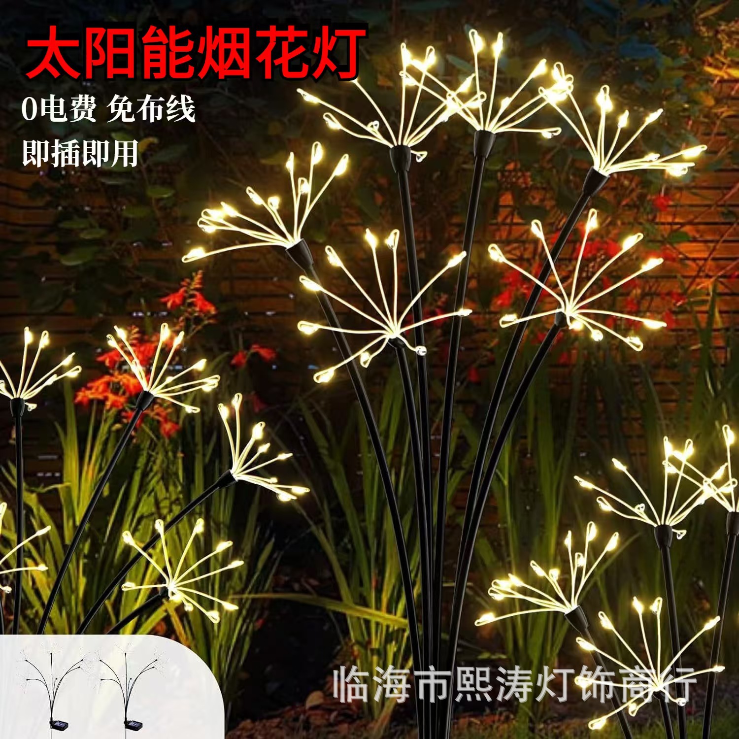 Lampu taman rumput tahan air luar ruangan lampu dandelion kembang api warna-warni LED tenaga surya