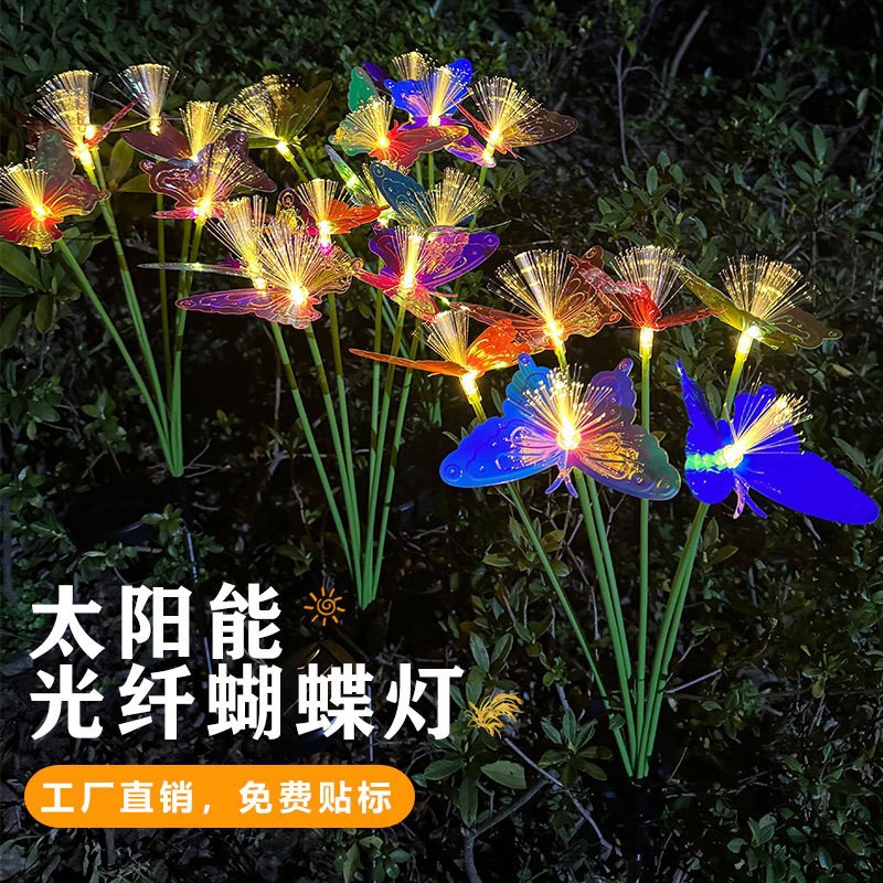 LED Surya Serat Optik Kupu-kupu Lantai Lampu Halaman Halaman Villa Teras Taman Suasana Dekorasi Luar Ruangan Tahan Air