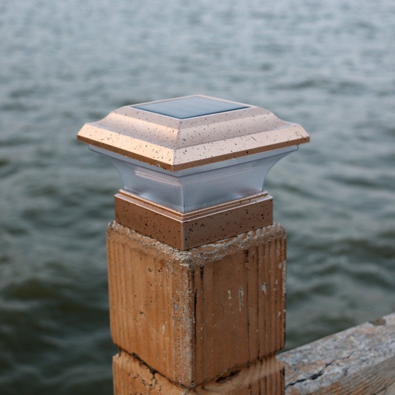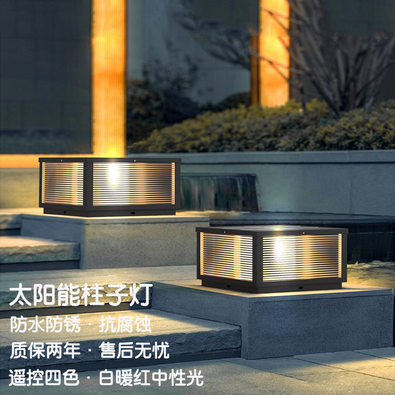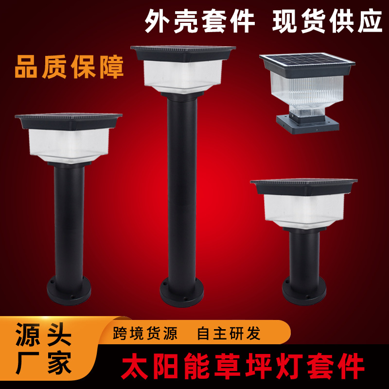 Lampu halaman rumput tenaga surya luar ruangan, lampu pilar persegi super terang die-cast aluminium cangkang lampu taman kit