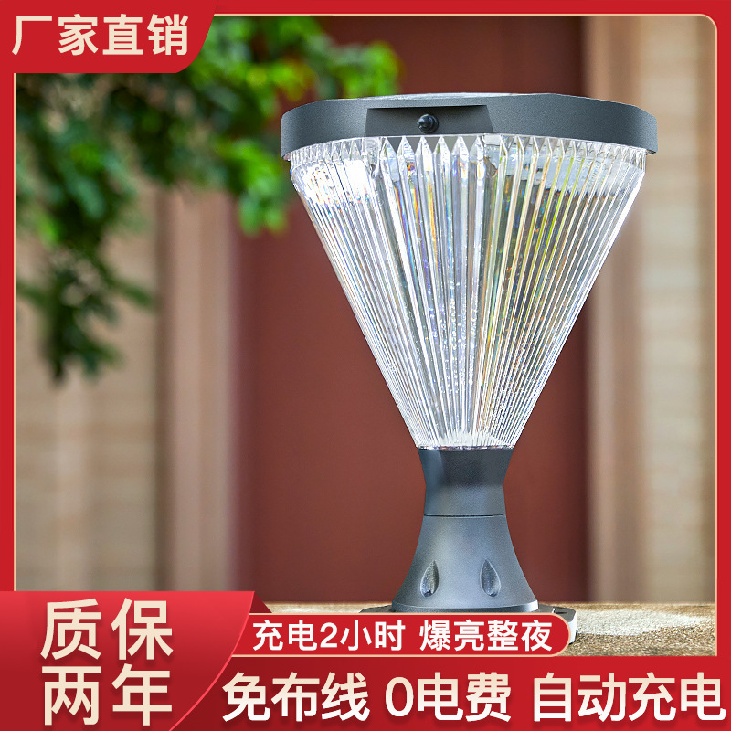 Lampu pilar surya, lampu taman pilar luar ruangan tahan air kekuatan tinggi lampu dinding halaman vila kolom tujuan ganda LED