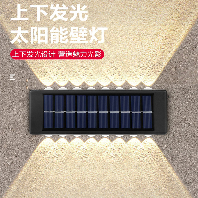 Lampu Taman Surya Balkon Lampu Dinding Tahan Air Luar Ruangan Lampu Cuci Dinding Kepala Ganda Lampu Hiasan Suasana Bercahaya Atas dan Bawah