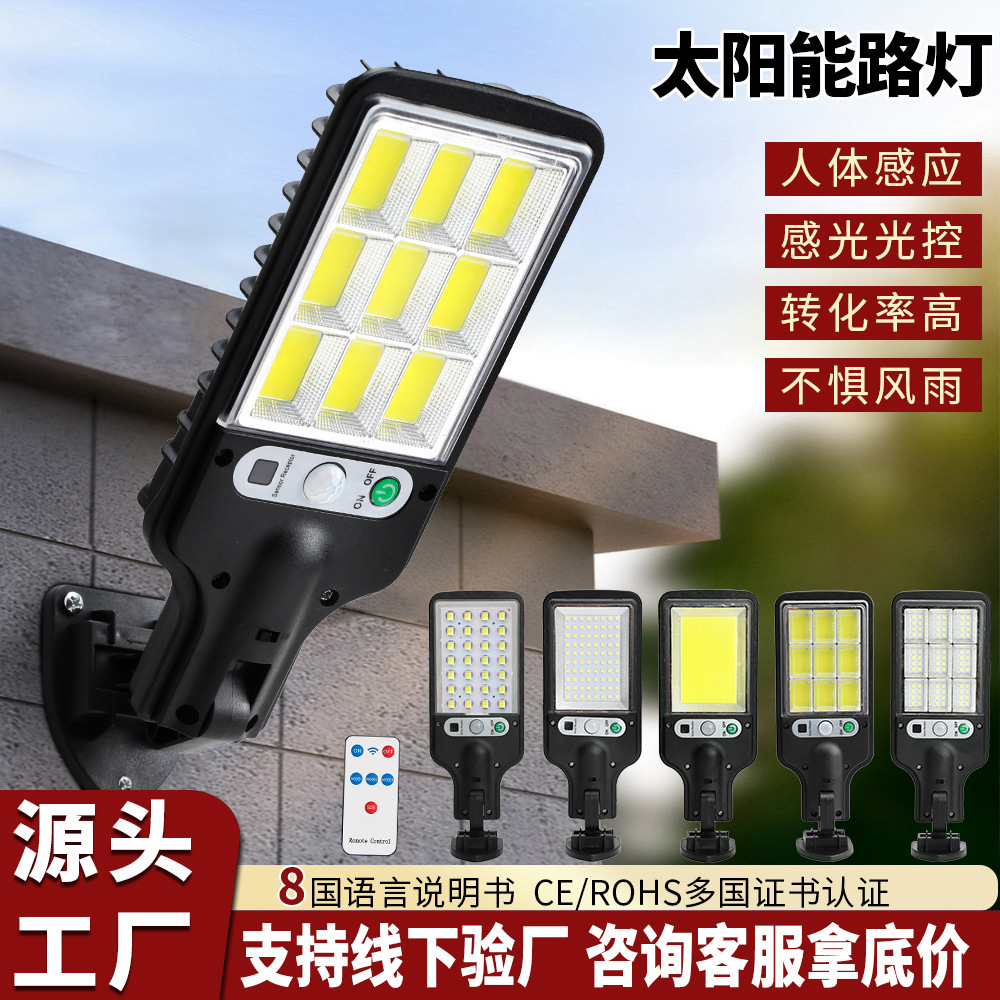 Lampu Tenaga Surya Lintas Batas Lampu Jalan LED Baterai Lithium Super Terang Luar Ruangan Tahan Air Manusia Sensor Lampu Taman dengan Remote Kontrol