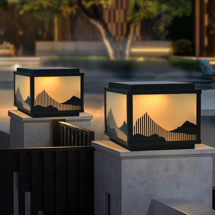 Lampu pilar surya modern minimalis, lampu pilar pintu luar ruangan tahan air lampu taman Villa dinding taman pilar