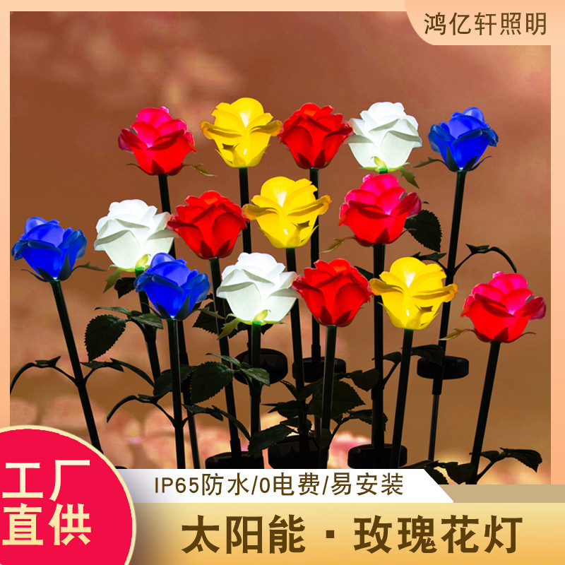 Lampu mawar surya, lampu lanskap luar ruangan lampu plug-in simulasi LED lampu surya mawar kecil