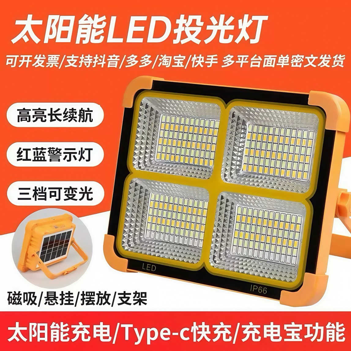 太阳能照明灯投光灯持久续航超大电量USB充电口户外应急照明多功