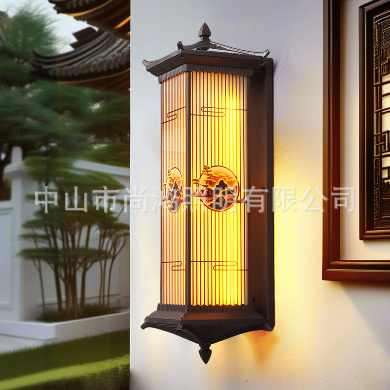 Lampu Dinding Surya Gaya Tiongkok Baru Halaman Pintu Villa Luar Ruangan Tahan Air Dinding Lanskap Dinding Luar Ruangan Retro Lampu Dinding