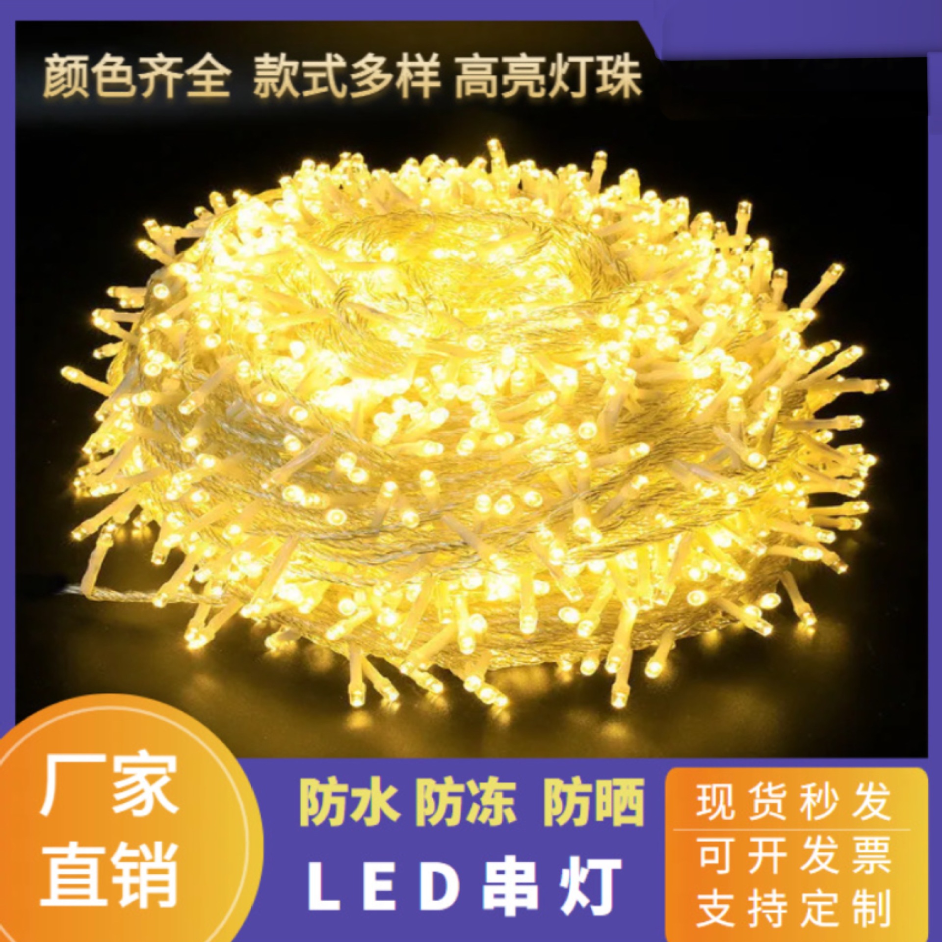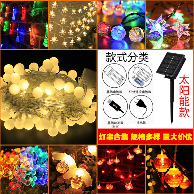 Lampu tali tenaga surya LED, Festival Natal, berkemah, luar ruangan, dekorasi kanopi, bola bintang, lampu berwarna
