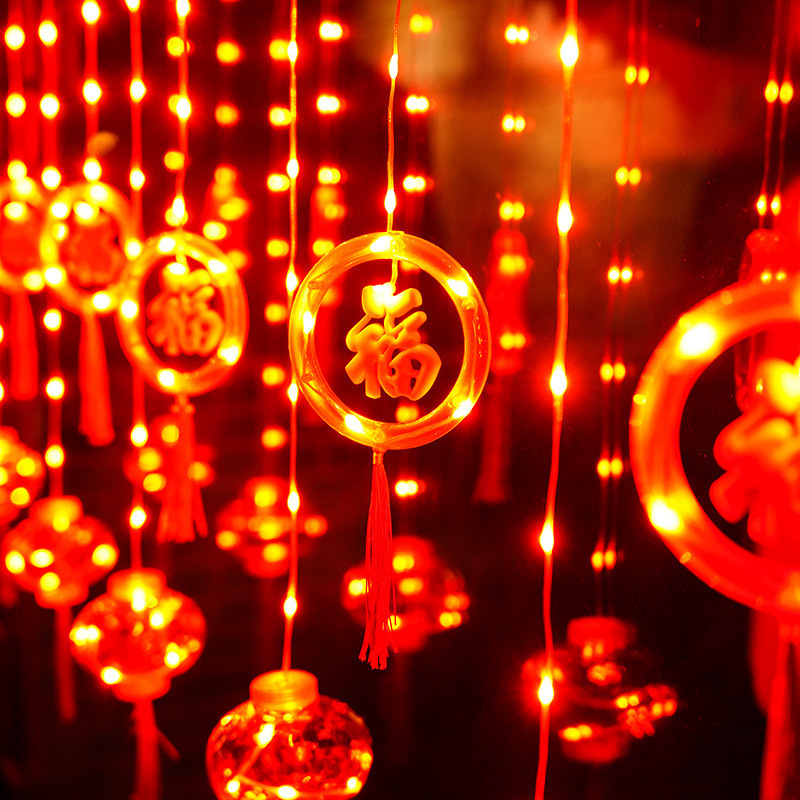 Lampu tirai lentera kabel kulit surya LED lampu lentera merah berkah bercahaya lampu hias meriah Festival Lentera Festival Musim Semi