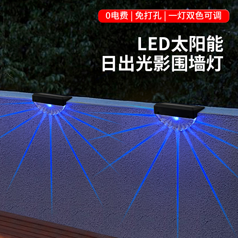 Lampu pagar tenaga surya untuk taman luar ruangan, lampu sensor otomatis, lampu pagar dan dinding, model baru, tujuh warna tetap.